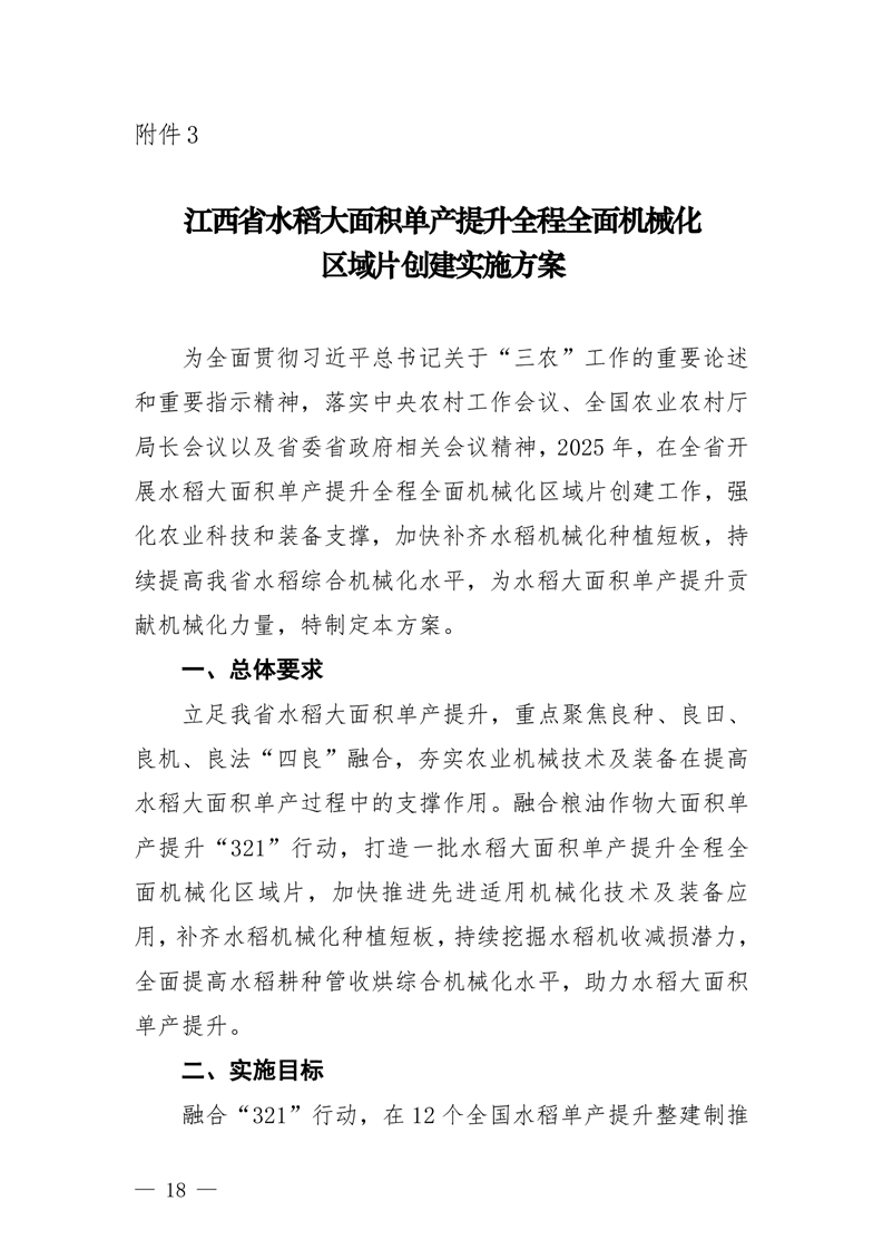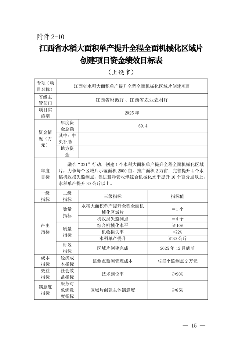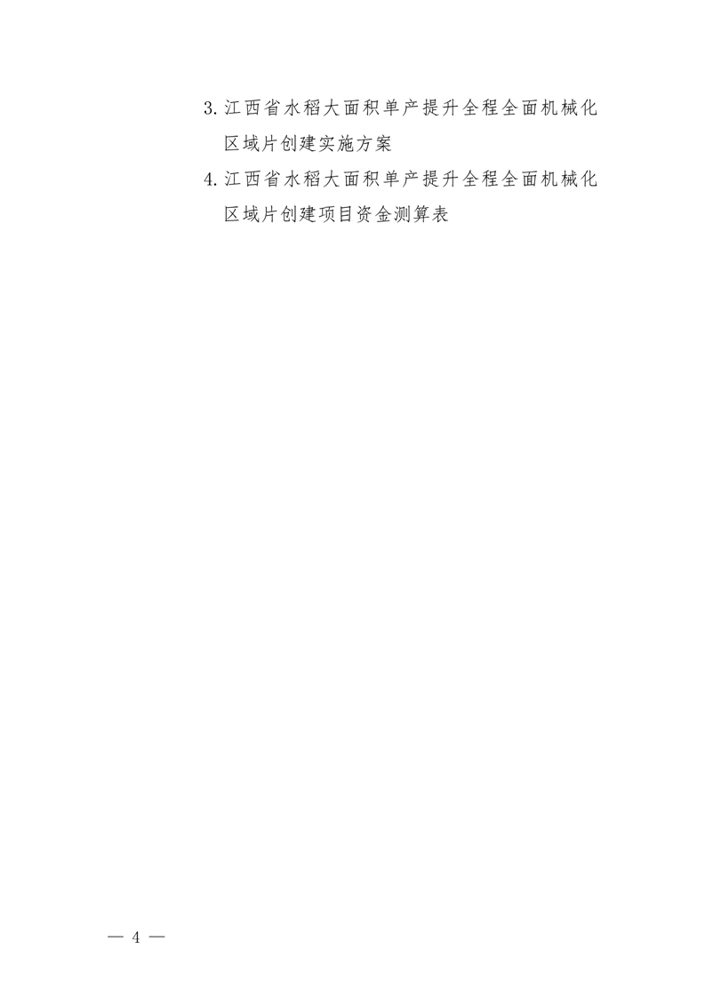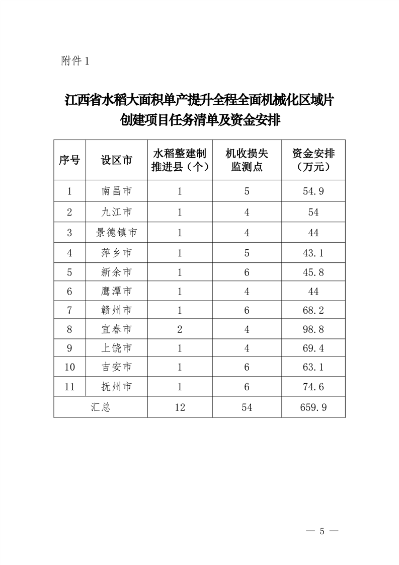 江西省水稻大面积单产提升全程全面机械化区域片创建项目资金分配方案