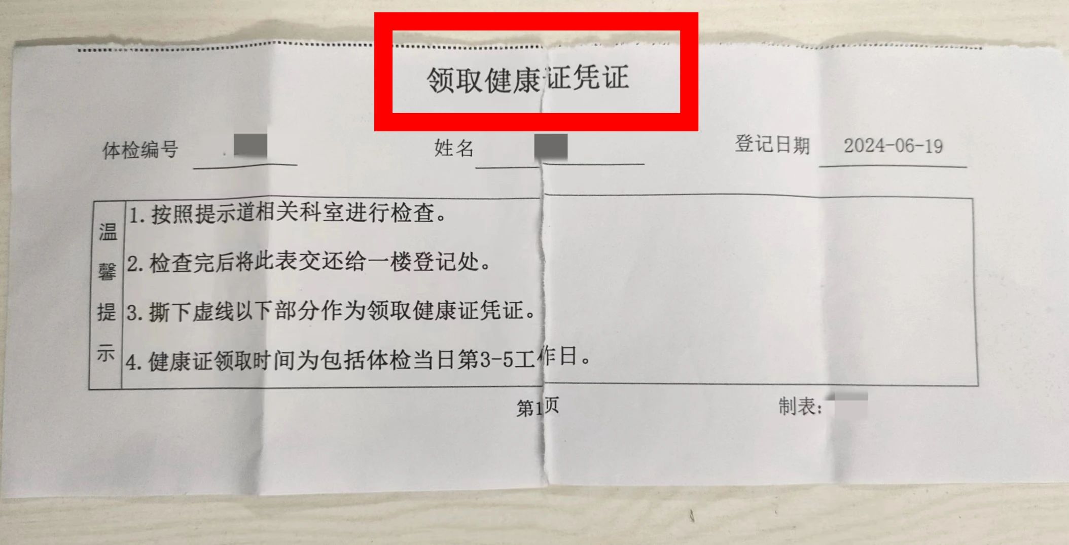 1、体检结束后保存好凭证,凭凭证可领取健康证;