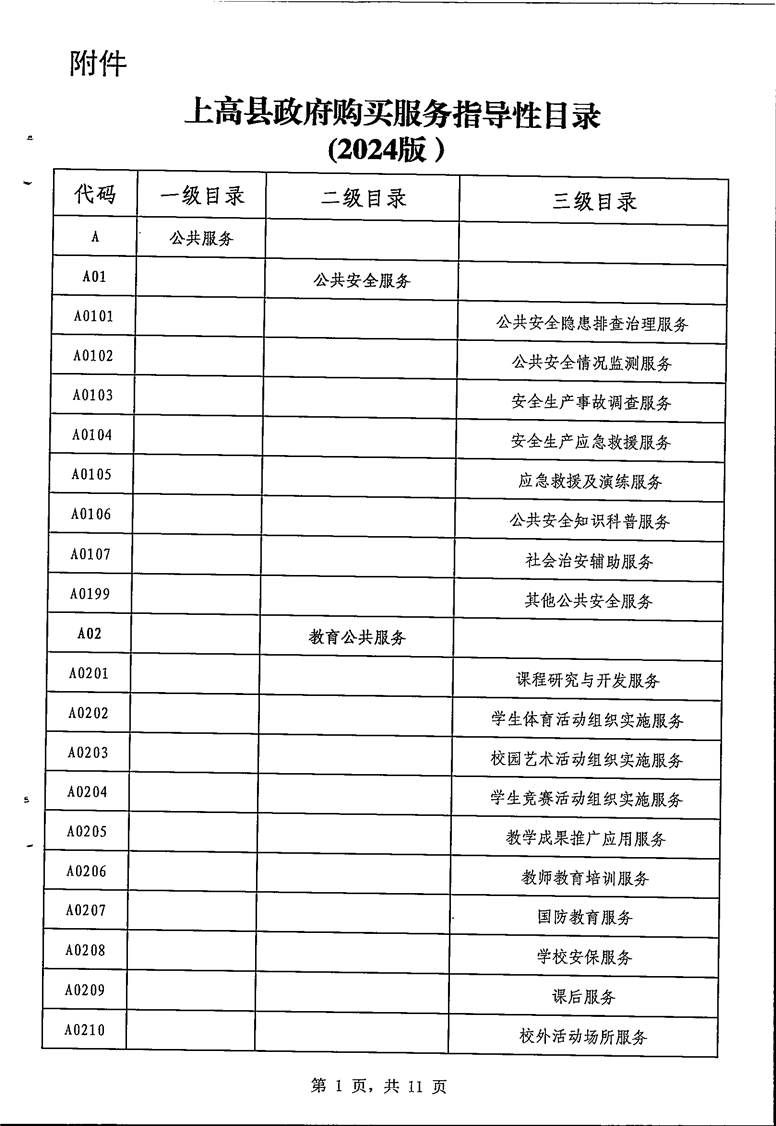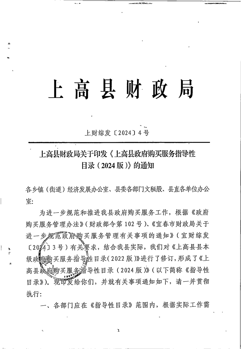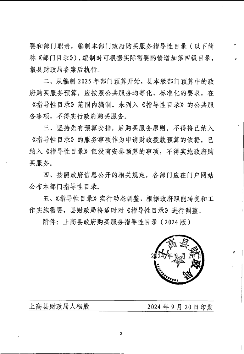 上高县政府购买服务指导性目录的通知