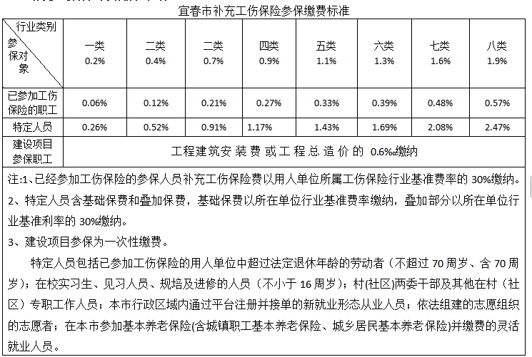 行业类别费率+已参加工伤保险的职工=特定人员标准。